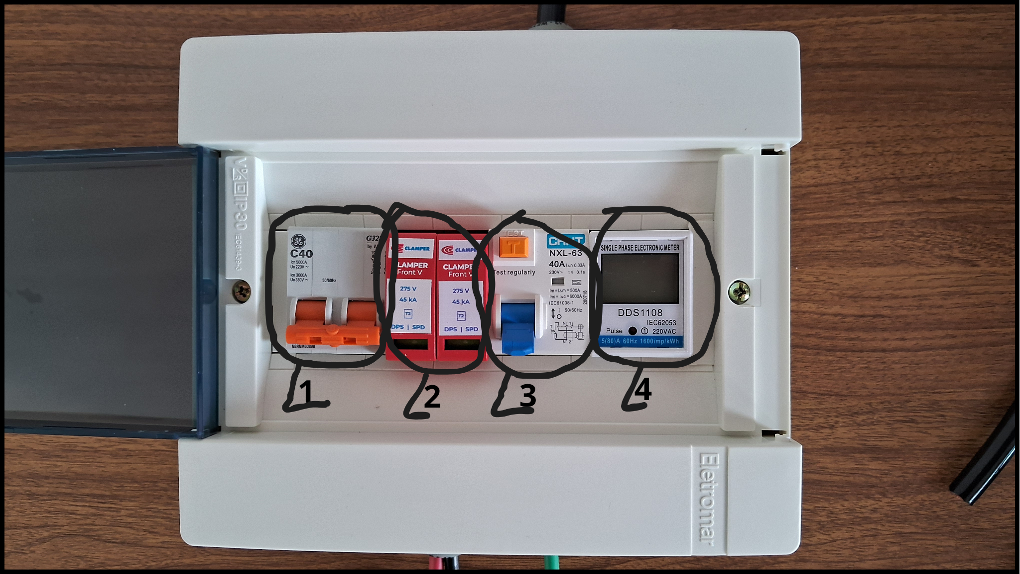 - Disjuntor eletromagnético - Protege os cabos. Caso necessário pode interromper automaticamente ou manualmente a circulação de corrente.
